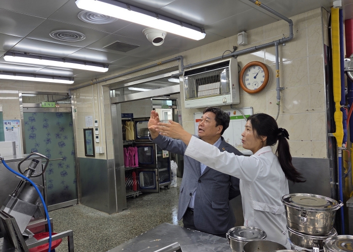 | ▲ 김호겸 경기도의회 교육기획위원회 의원, 번천초등학교 학교 급식실 환기설비 개선 현황 점검 |