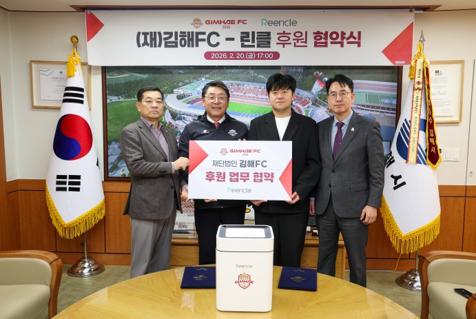 [파이낸셜경제=김예빈 기자] 재단법인 김해FC가 지역 내 혁신 기업과의 파트너십을 통해 구단 경쟁력 강화와 지역 상생이라는 두 마리 토끼 잡기에 나섰다. 김해FC는 20일, 가정용 음식물처리기 전문 브랜드인 ‘린클(Reencle)’과 공식 후원 협약을 체결했다고 밝혔다. 이번 협약은 김해FC의 중장기 발전 5대 전략 중 하나인 브랜드 협력 프로젝트의 핵심 사업, ‘아이언 유니티 네트워크(Iron Unity Network)’ 구축의 일환으로 성사됐다.