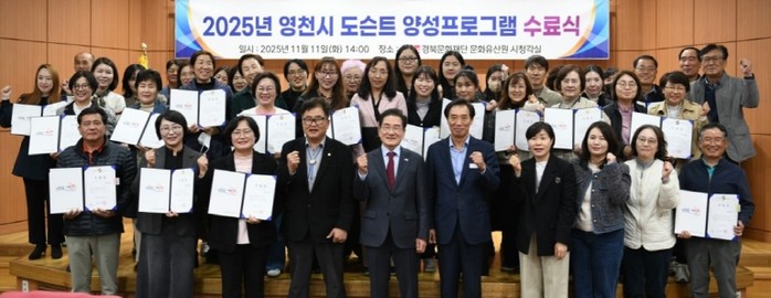 이번 프로그램은 2026년 개관을 앞둔 영천시립박물관의 도슨트를 양성하기 위해 마련됐다. 지난 9월 2일 개강 이후 총 9회에 걸쳐 진행됐으며, 전체 수강생 70명 중 90%에 해당하는 55명이 수료했다.