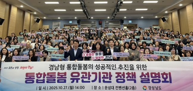 김영선 경남도 복지여성국장은 “이번 설명회를 통해 경남형 통합돌봄의 정책 방향과 서비스 내용에 대한 이해도를 높이고, 기관 간 협력체계를 강화하는 자리가 되기를 바란다”면서, “도민 모두가 행복한 돌봄공동체를 만들어가는 여정에 함께해 주시기를 진심으로 부탁드린다”라고 전했다.