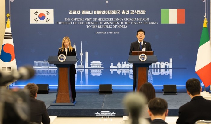 [파이낸셜경제=김예빈 기자] 이재명 대통령은 19일 조르자 멜로니 이탈리아 총리와의 정상회담 뒤 "저와 멜로니 총리는 전략적 동반자 명칭에 부합하는 미래지향적 수준으로 양국 관계를 더욱 발전시켜 나가기로 합의했다"고 밝혔다.