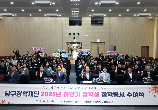 [파이낸셜경제=김예빈 기자] 재단법인 울산광역시남구장학재단(이사장 서동욱 남구청장)은 23일 남구청 6층에서 ‘2025년 하반기 장학증서 수여식’을 개최했다.