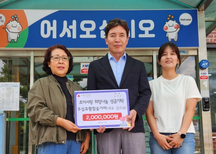 | ▲ 초이동 주심유황참숯가마 김순남 대표, 200만원 성금 기탁 |