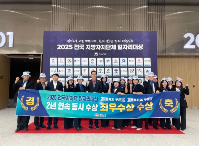 [파이낸셜경제=김예빈 기자] 경상남도는 고용노동부가 주관한 ‘2025년 전국 지자자치단체 일자리대상’에서 공시제 부문과 우수사업 부문 모두 최우수상을 수상했다.
