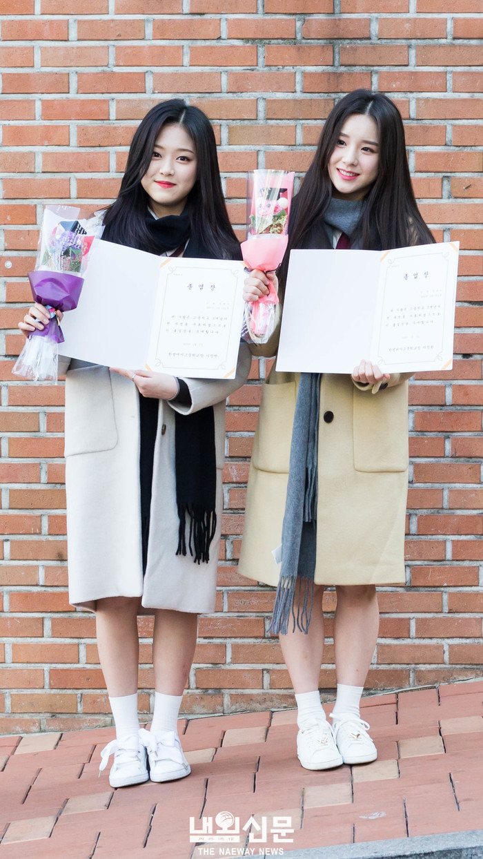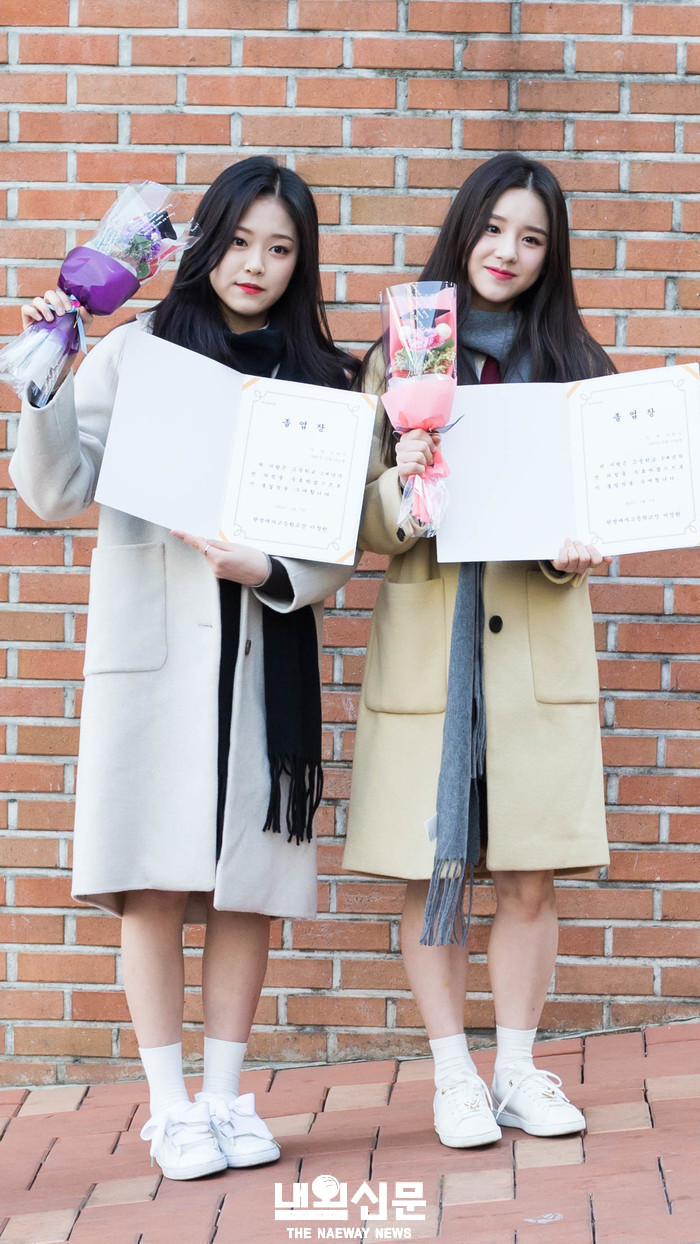 [파이낸셜경제]최동민 기자= 이달의 소녀 희진과 현진이 7일 오전 서울 성북구 한성여자고등학교 졸업식에 참석했다. 졸업식에 앞서 취재진들 앞에서 포토타임을 갖고 있다.