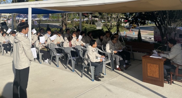 | ▲ 보은군, 대추축제 성공 위해 매일 아침 ‘현장 중심 간부회의’ 개최-대추축제장에서 열린 간부회의 모습 |