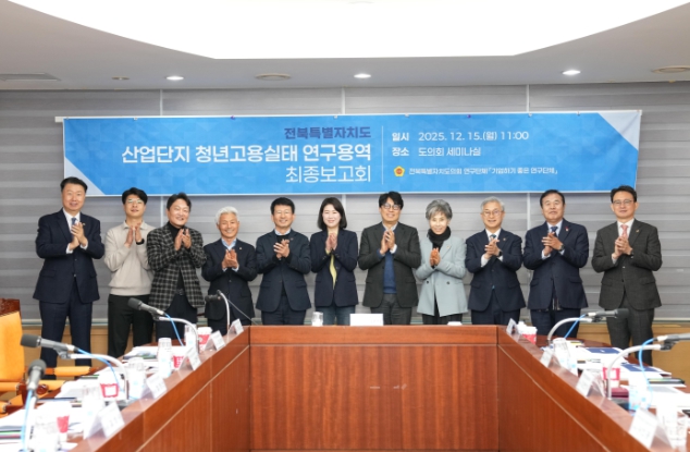 [파이낸셜경제=김예빈 기자] 전북특별자치도의회 의원 연구단체 ‘기업하기 좋은 전북’(대표위원 서난이)은 15일 도의회 세미나실에서 ‘전북 산업단지 청년 고용실태 연구’ 최종보고회를 열고, 지역 산업단지의 청년 고용 여건과 구조적 한계를 진단하고 정책 대안을 제시했다.