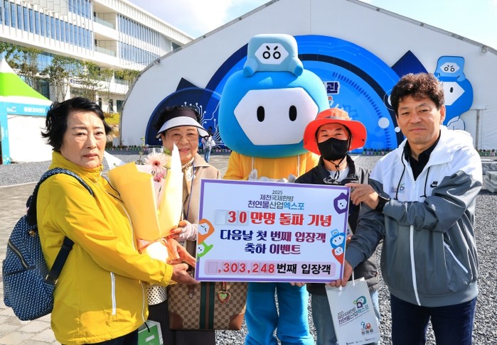 [파이낸셜경제=김기보 기자] 2025제천국제한방천연물산업엑스포 조직위원회는 9월 29일 오전, 누적 관람객 30만 명 돌파를 기념해 특별 이벤트를 진행했다.