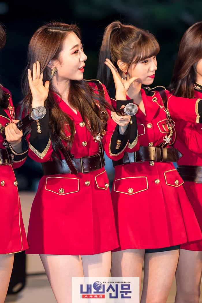 걸그룹 우주소녀가 27일 오후, 영동대로에서 열린 '현대자동차 팬파크 영동대로 거리응원 독일전'에 참석하여 무대를 펼치고 있다.
