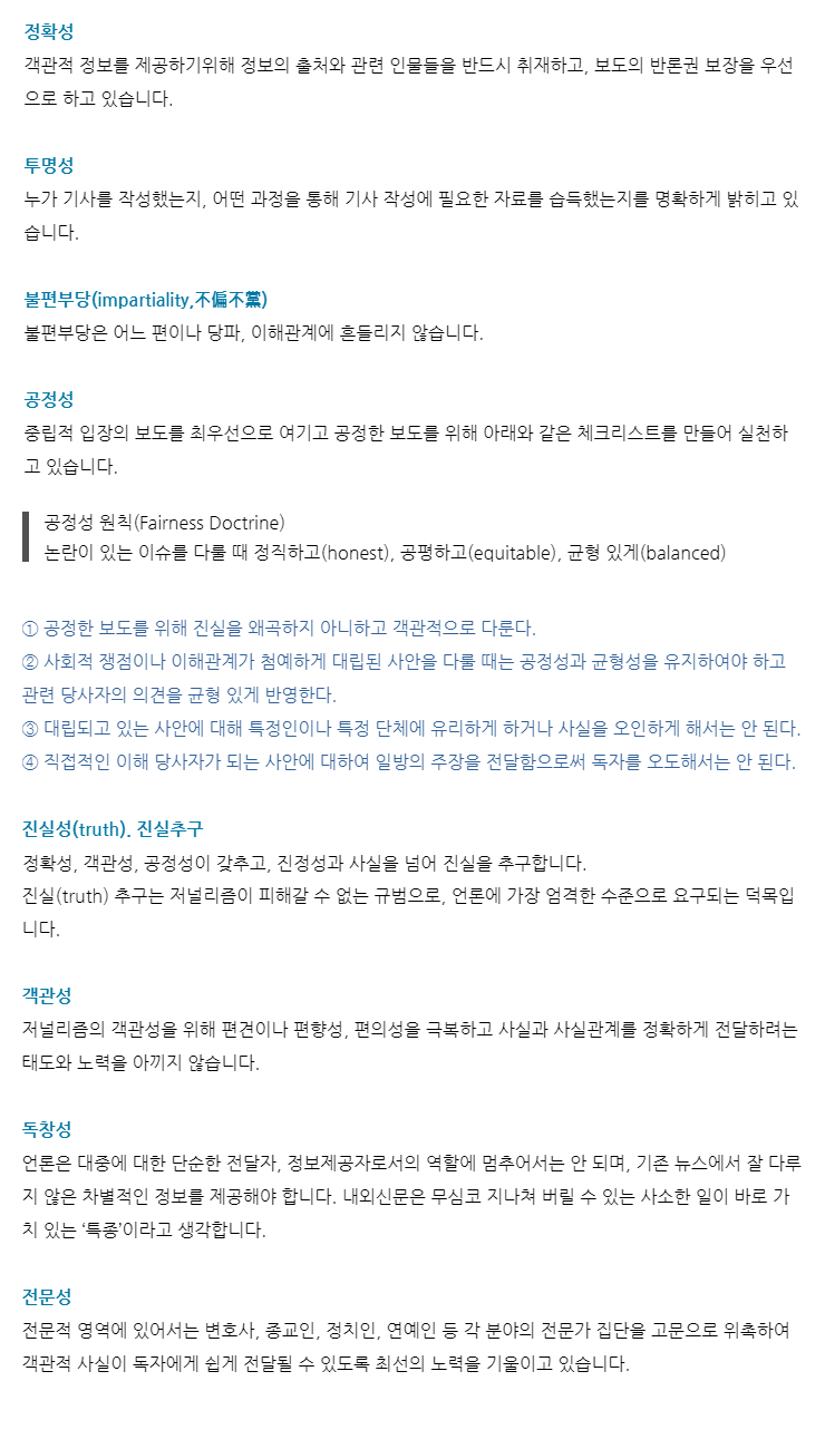 뉴스와 정보의 정확성, 투명성,불편부당,공정성,진실추구,객관성,독창성,전문성을 원칙으로합니다.