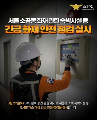 소방청, 서울 숙박시설 긴급 화재안전 점검 실시