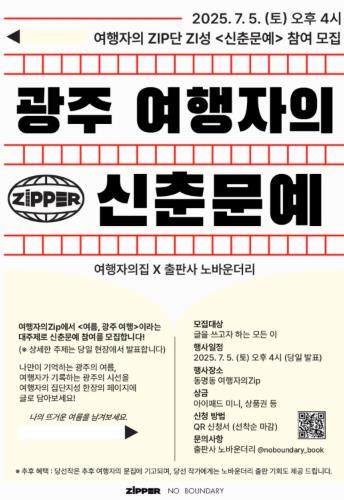 우수작은 ‘여행자의 문집(ZIP)’으로 출간되며, 로컬 크리에이터 백수지 작가가 운영하는 독립출판사 노바운더리와의 협업을 통해 향후 정식 출판 기회도 제공될 예정이다.
