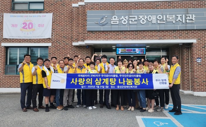 이날 두 클럽은 복지관을 찾은 이용자들을 위해 정성껏 준비한 삼계탕을 제공하는 초복 특별 봉사활동을 펼쳤으며, 조병옥 음성군수가 함께 자리해 나눔 행사의 의미를 더했다.