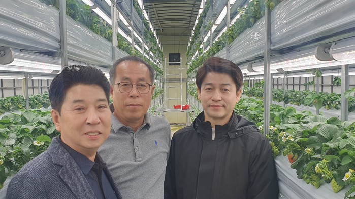 | ▲ 좌측부터 인존장학복지재단 설립자 김택성 전 전북도의원, 스마트팜 딸기 재배 기술 장인 김영남 기술고문, 전 국회 농림축산식품해양수산위원회 비서관·현 전북특별자치도의회 의장실 박준필 비서관 |