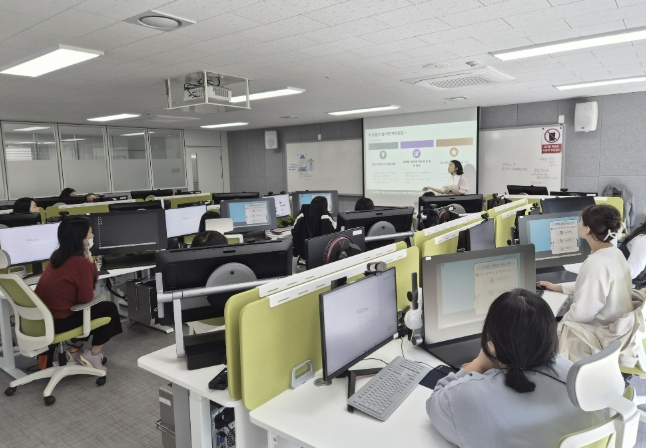 교육 프로그램은 △AI 캔바 활용 △ AI 미리캔버스 활용 △ AI 챗GPT 활용 △AI 젠스파크 활용 등 총 5개 과정이 운영되며, 과정별 15명의 소규모 실습 중심으로 진행된다.