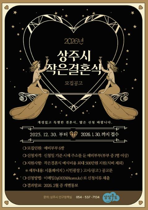 | ▲ 2026년 상주시 작은결혼식 지원사업 신청자 모집 |