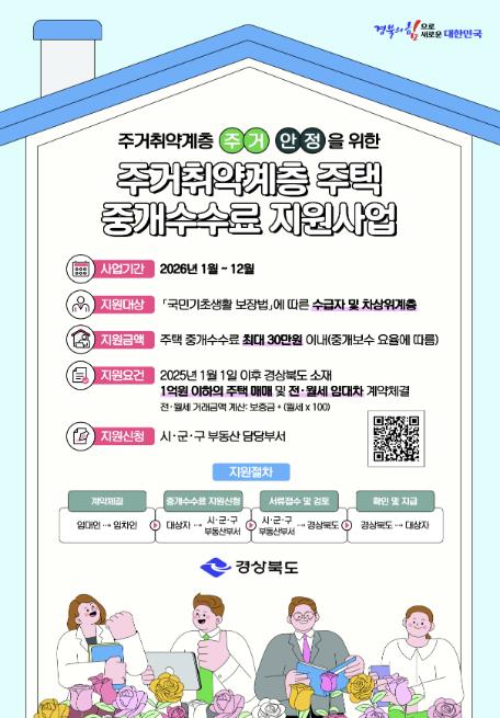 [파이낸셜경제=김지훈 기자] 상주시는 주거 취약계층의 경제적 부담을 완화하고 안정적인 주거환경 조성을 위하여 2026년 1월부터 “주거 취약계층 주택 중개보수 지원사업”을 시행한다.
