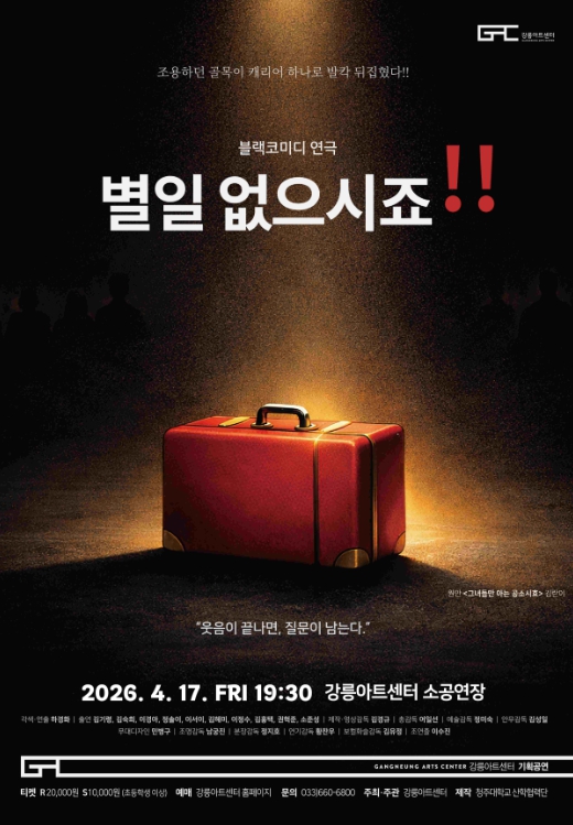 [파이낸셜경제=조성환 기자] 강릉아트센터는 오는 17일 오후 7시 30분, 소공연장에서 블랙코미디 연극 '별 일 없으시죠!!'를 선보인다.
