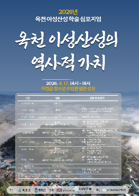[파이낸셜경제=김기보 기자] 옥천군은 오는 17일 청소년수련관 별관 강당에서 ‘옥천 이성산성의 역사적 가치’를 주제로 학술대회를 개최한다고 밝혔다.