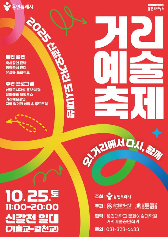 [파이낸셜경제=김기보 기자] 용인특례시는 25일 신갈오거리에 있는 신갈천 일대에서 ‘2025 신갈오거리 도시재생 거리예술축제’를 개최한다고 14일 밝혔다.