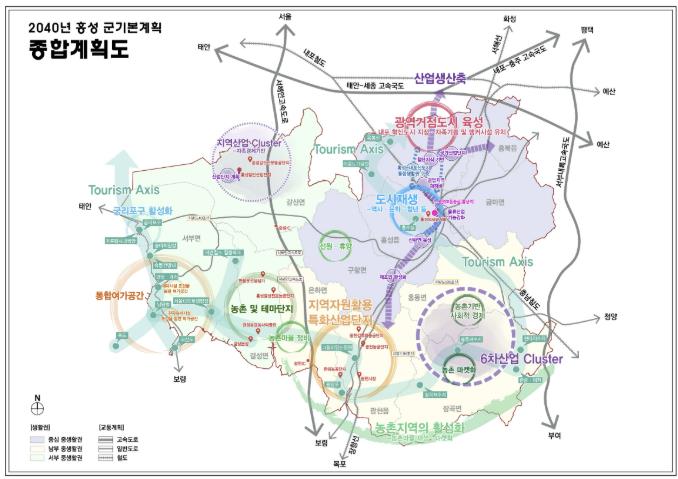 아울러 교통·공원·환경·방재 등 부문별 계획에서는 향후 도시계획 수립 시 활용할 수 있는 군관리계획 가이드라인을 제시했으며, 주요 이슈별 전략으로 ▲서해선 개통에 따른 도시발전 전략 ▲홍성읍-내포신도시 상생발전 전략 ▲역사·문화 관광도시 조성 방안 ▲환경친화적 기후변화 대응 전략 등을 담아 홍성군의 지속가능한 발전 방향을 제시했다.