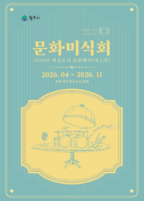 [파이낸셜경제=조성환 기자] 원주시는 오는 21일 낮 12시, 건강보험심사평가원 1사옥 앞 야외 공연을 시작으로 ‘2026년 혁신도시 문화미식회’의 막을 올린다. 이어 25일 오후 2시에는 혁신도시 미리내사거리 분수광장에서 버스킹 공연을 진행한다.