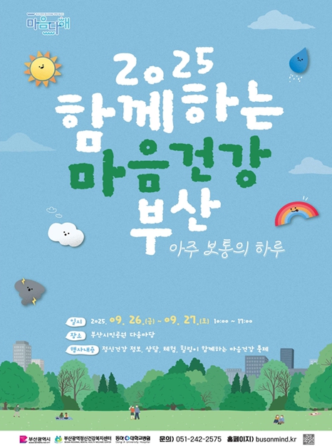 [파이낸셜경제=박영진 기자] 부산시는 오늘(26일)부터 27일까지 부산시민공원 다솜마당에서 '2025 함께하는 마음건강 부산'을 개최한다고 밝혔다.