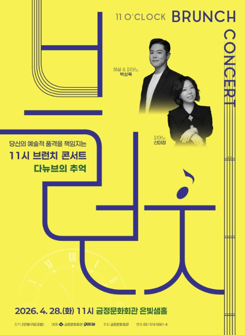 [파이낸셜경제=박영진 기자] 금정문화회관이 준비한 4월의 11시 브런치 콘서트는 따스한 봄기운과 함께 유럽의 낭만을 만끽할 수 있는‘다뉴브의 추억’이다.