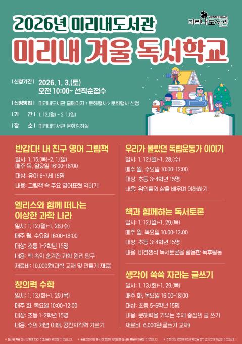 | ▲ 미리내 겨울 독서학교 안내문 |