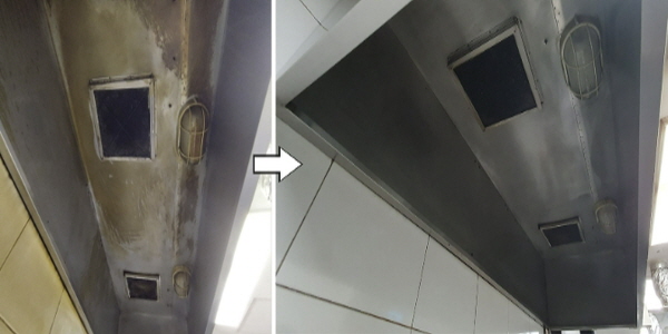 | ▲ 성남시 일반음식점 주방 후드 청소 전후 비교 |