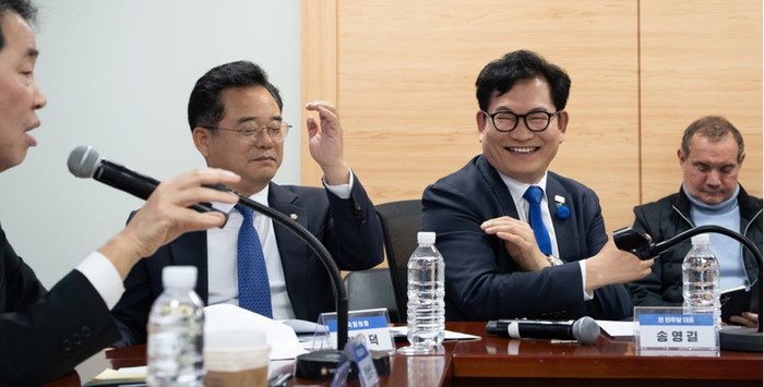 박선원 의원실이 주최하고 사단법인 먹고사는문제연구소가 주관한 「 미 · 이스라엘 대 이란 전쟁 진단과 전망 」 토론회가 10 일 오후 서울 여의도 국회에서 열렸다 . 이날 토론회는 인남식 국립외교원 교수가 발제자로 , 송영길 전 더불어민주당 대표가 토론자로 참석했다 . 김영호 국회의원 , 민병덕 국회의원도 참석해 논의에 함께하였다 .