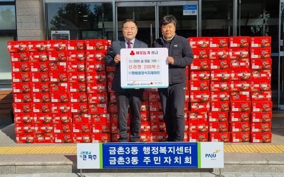 | ▲ 파주시 금촌3동, 설 명절 맞아 ㈜화림중앙식자재마트로부터 라면 200상자 기탁 받아 |
