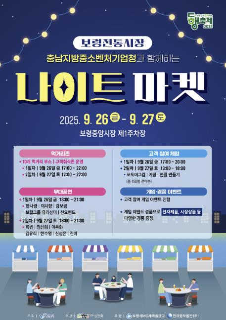 이번 행사는 보령시가 주최하고 중앙시장 상인회가 주관하며, 지역 주민과 관광객을 위한 다채로운 먹거리, 공연, 체험 행사로 가득 채워질 예정이다.
