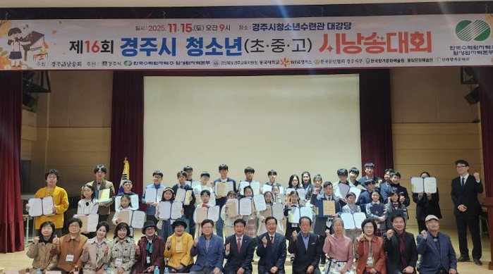 [파이낸셜경제=김지훈 기자] 경주시는 지난 15일 청소년수련관에서 열린 ‘제16회 경주시 청소년 시낭송대회’가 성황리에 마무리됐다고 밝혔다.