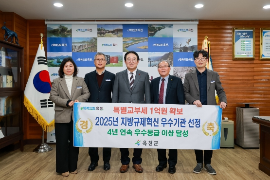 [파이낸셜경제=김기보 기자] 옥천군은 행정안전부가 주관하는‘2025년 지방규제혁신 추진성과 평가’에서 4년 연속 우수기관으로 선정돼 특별교부세 1억 원을 확보하는 성과를 거두었다고 밝혔다.