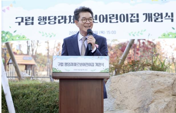 | ▲ 지난 11월 구립 행당라체르보어린이집 개원식에서 인사말을 하고 있는 정원오 성동구청장 |