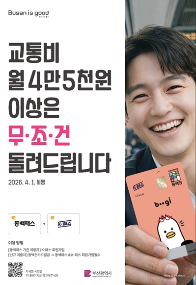 또한, 시는 제도 변경에 대한 대시민 안내를 위해 오늘(4일) 오전 8시부터 서면교차로와 도시철도 서면역, 시청역에서 동백패스와 K패스 연계 개선 사항과 대중교통 이용 홍보를 위한 캠페인을 전개했다.
