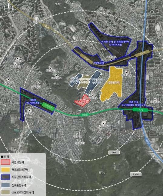 한편, 구에 따르면 역세권 활성화사업이 진행 중인 사당동 318-99번지 일대(옛 범진여객 부지)도 최근 정비구역 지정 및 정비계획 결정 고시를 마쳤다.
