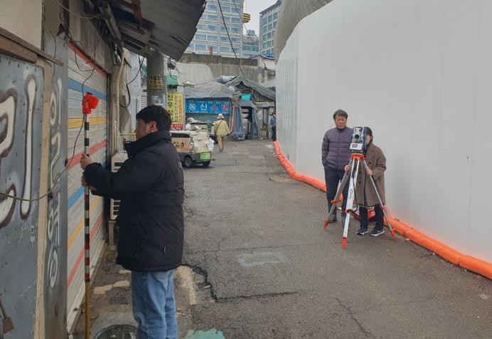 | ▲ 세운5구역 노후건물 측정점 설치 모습 |