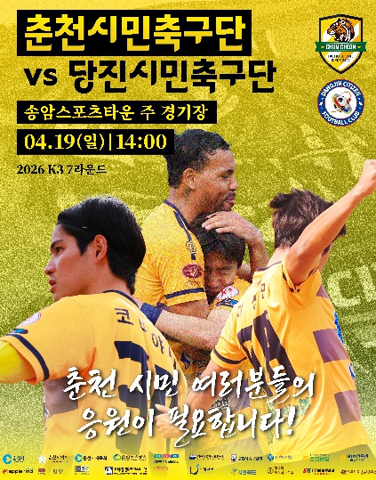 춘천시민축구단은 19일 오후 2시 송암스포츠타운 주경기장에서 당진시민축구단을 상대로 2026 K3리그 홈경기를 치른다.