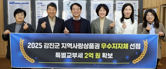 [파이낸셜경제=김예빈 기자] 강진군이 행정안전부 주관 ‘2025년 지역사랑상품권 발행 우수지자체’로 선정돼 특별교부세 2억 원을 확보했다.