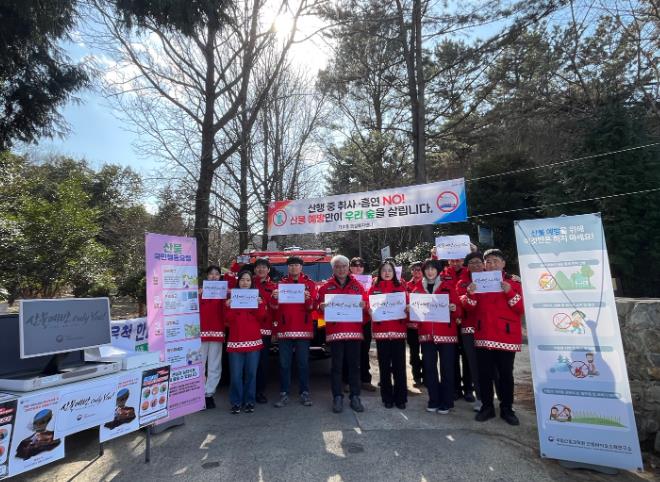 이번 캠페인은 ‘산불조심기간(1.20.~5.15)’을 맞아 국립산림과학원 산림바이오소재연구소와 함께 추진하게 됐으며, 올해 도입되어 산불현장에 투입되고 있는 다목적 산불진화차를 전시하고, 등산객을 대상으로 산불 예방 메시지와 홍보물 전달, 산불예방 SNS 챌린지 참여 요청 등을 적극 실시했다.