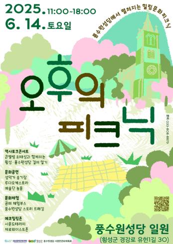 [파이낸셜경제=조성환 기자] 횡성문화관광재단은 오는 14일 횡성의 대표적 문화유산인 풍수원성당에서 지역민과 관광객을 위한 특별한 문화행사‘오후의 피크닉’을 개최한다.