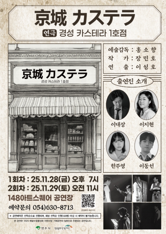 [파이낸셜경제=김지훈 기자] (재)영주문화관광재단은 오는 11월 28일 오후 7시와 11월 29일 오전 11시, 148아트스퀘어 공연장에서 광복 80주년을 기념한 창작연극 '경성 카스테라 1호점'을 선보인다.