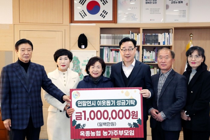 이번 성금은 옥농농협 농가주부모임 회원들이 직접 호박죽을 만들고 판매하여 마련한 수익금이다.