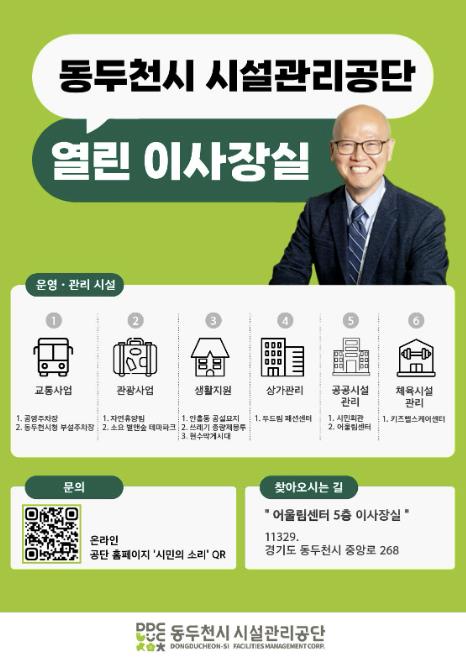 ▲ 동두천시 시설관리공단, ‘열린 이사장실’ 연중 상시 운영 시작 |