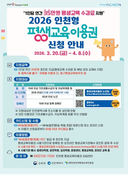| ▲ 2026년 인천형 평생교육이용권 신청 접수 |