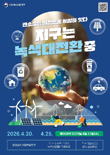 올해 주제는 ‘지구는 녹색 대 전환 중, 탄소중립 실천으로 세상을 잇다’로, 화석연료 중심의 경제 구조를 탄소중립 재생에너지 체제로 탈바꿈하는 ‘녹색 대 전환’의 의미를 담고 있다.