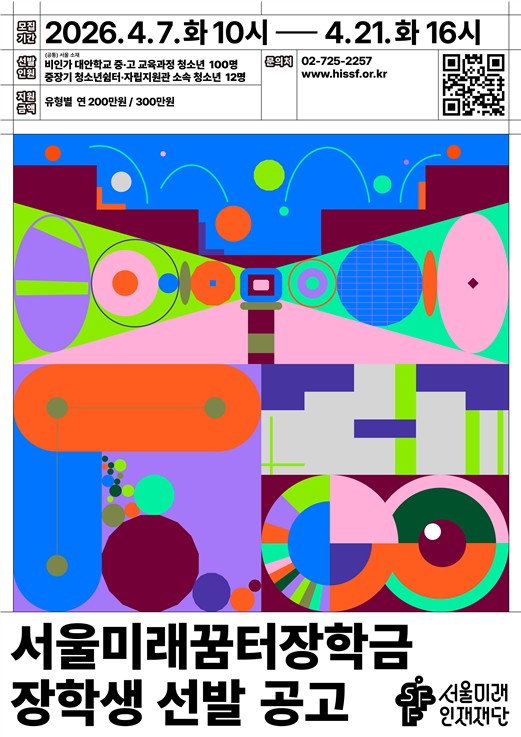 [파이낸셜경제=김예빈 기자] 서울미래인재재단은 기존 서울꿈길장학금의 지원 대상을 확대하고 유형을 세분화하여 ‘서울미래꿈터장학금’을 신설한다. 재단은 비인가 대안학교 재학생은 물론 가정 밖 청소년까지 총 112명을 선발하고, 총 2억 3,600만 원 규모의 학업 장려금을 지원할 계획이다.