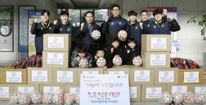 | ▲ 수원시 장안구, 장안리틀풋볼아카데미로부터 어려운 이웃 위한 라면 및 축구공 기부받아 |